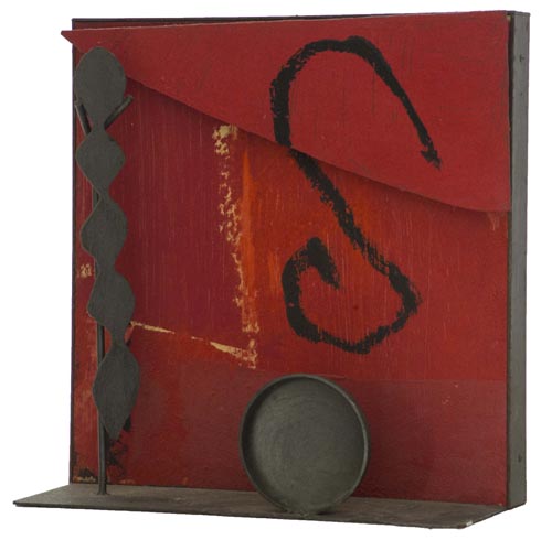 Tommaso Cascella Roma 1951 Ricavare l'inverso 1992, Scultura in ferro e legno dipinto, cm. 40,5x40,5x15, Sul verso: firma, data e titolo.