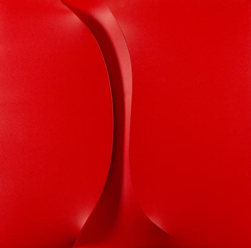 Giuseppe Amadio Todi (Pg) 1944 Mnaqa "Giubilo rosso" 2015, Estroflessione su tela dipinta, cm. 60x60x8, Sul verso: firma, data e titolo. Autentica dell'Artista su foto con n° 375.