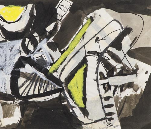 Claudio Cintoli Imola 1935 Roma 1978 Senza titolo 1958, Acquerello e china su carta, cm. 21x24,5, Firma e data in basso a destra; Sul verso: Scritto di Autenticità di Vittorio Cintoli.