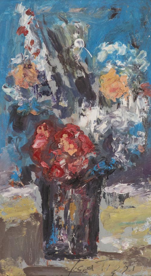 Sergio Scatizzi Gragnano (Lu) 1918 Firenze 2009 Vaso di fiori , Olio su cartone, cm. 35x20 Firmato in basso a destra; Sul verso: firma.