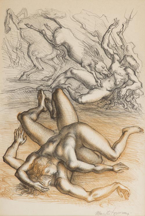 Marcello Tommasi Piertrasanta (Lu) 1928 Lido di Camaiore (Lu) 2008 Senza titolo , Carboncino e sanguigna su carta, cm. 55,5x37,5 Firmato in basso a destra.