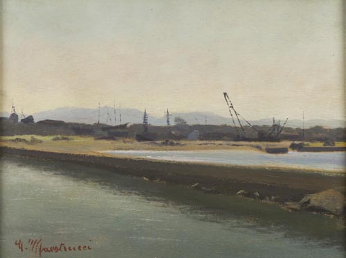 Lot 429 | Umberto Maestrucci Firenze 1897 1952 Marina , Olio su cartone, cm. 34,5x46...