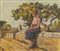Cafiero Filippelli Livorno 1889 1973 Donna sul muretto , Olio su tavola, cm....