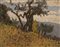 Giovanni Lomi Livorno 1889 Livorno 1969 Campagna Toscana 1940 c.a., Olio su tavola, cm. 21,5x27 Firmato in basso a sinistra. Autentica di Massimo Lomi su foto con Archivio n° 487.