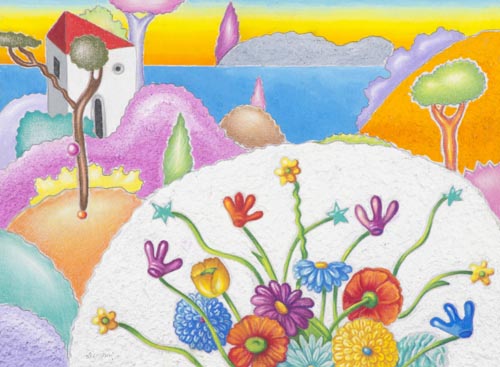 Luca Alinari Firenze 1943 Paesaggio , Tecnica mista su tela applicata su tavola, cm. 29x39 Firmato in basso a sinistra. Autentica dell'Artista su foto.