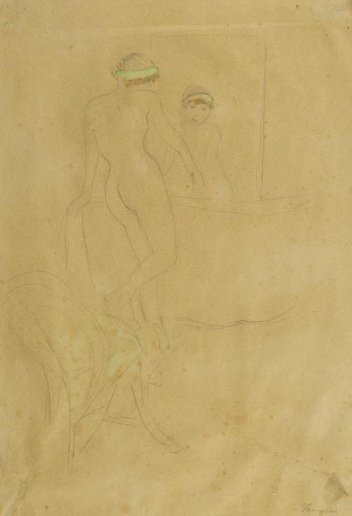 Mario Cavaglieri Rovigo 1887 Payloubère par Pavie 1969 Allo specchio , Tecnica mista su carta, cm. 46x33 Firmato in basso a destra. La carta presenta lievi imperfezioni.