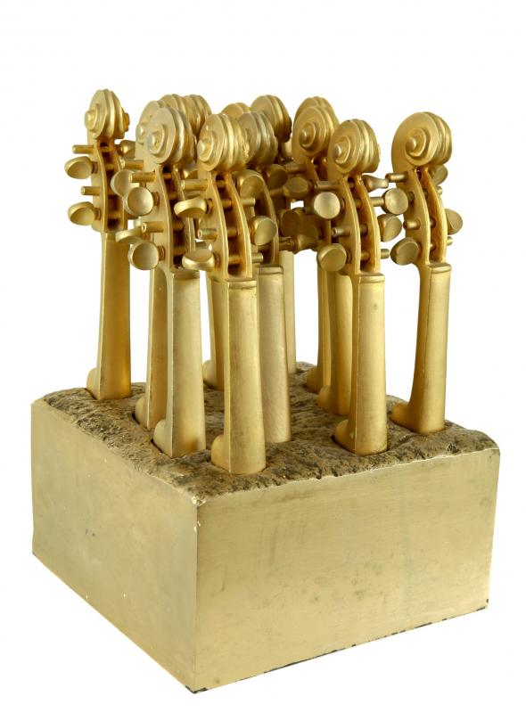 FERNANDEZ ARMAN (1928-2005) Violini scultura in bronzo dorato esemplare 43/50 cm 26x26x37 firmato e numerato sulla base sul retro