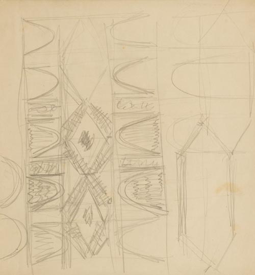 Fortunato Depero Fondo (Tn) 1892 Rovereto (Tn) 1960 Studio logistico per le decorazioni della sala del consiglio provinciale di Trento 1953/54 c.a., Matita su carta, cm. 30x28 Autentica Archivio unico per il Catalogo delle Opere futuriste di Fortunato Depero su foto a cura di Maurizio Scudiero.