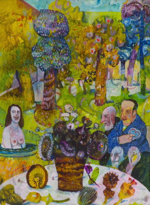 Antonio Possenti Lucca 1933 Giardino di Susanna 1998, Olio su cartone telato, cm. 40x30 Firmato in basso a destra; Sul verso: firma e titolo; Timbro: "Galleria l'Immagine", Arezzo, con archivio n° 668; Dedica a persona.