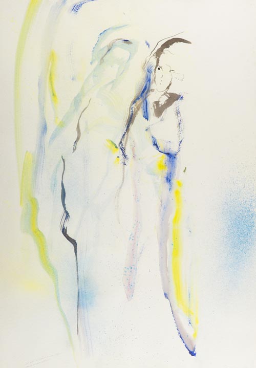 Ernesto Treccani Milano 1920 2009 Dal sole rinasceva una figura... , TeCnica mista su carta, cm. 100x70 Firma in basso a destra, titolo in basso a sinistra.