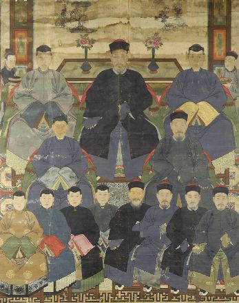 Ritratto degli antenati Dipinto su tela, Cina, XIX sec., cm. 155x120.