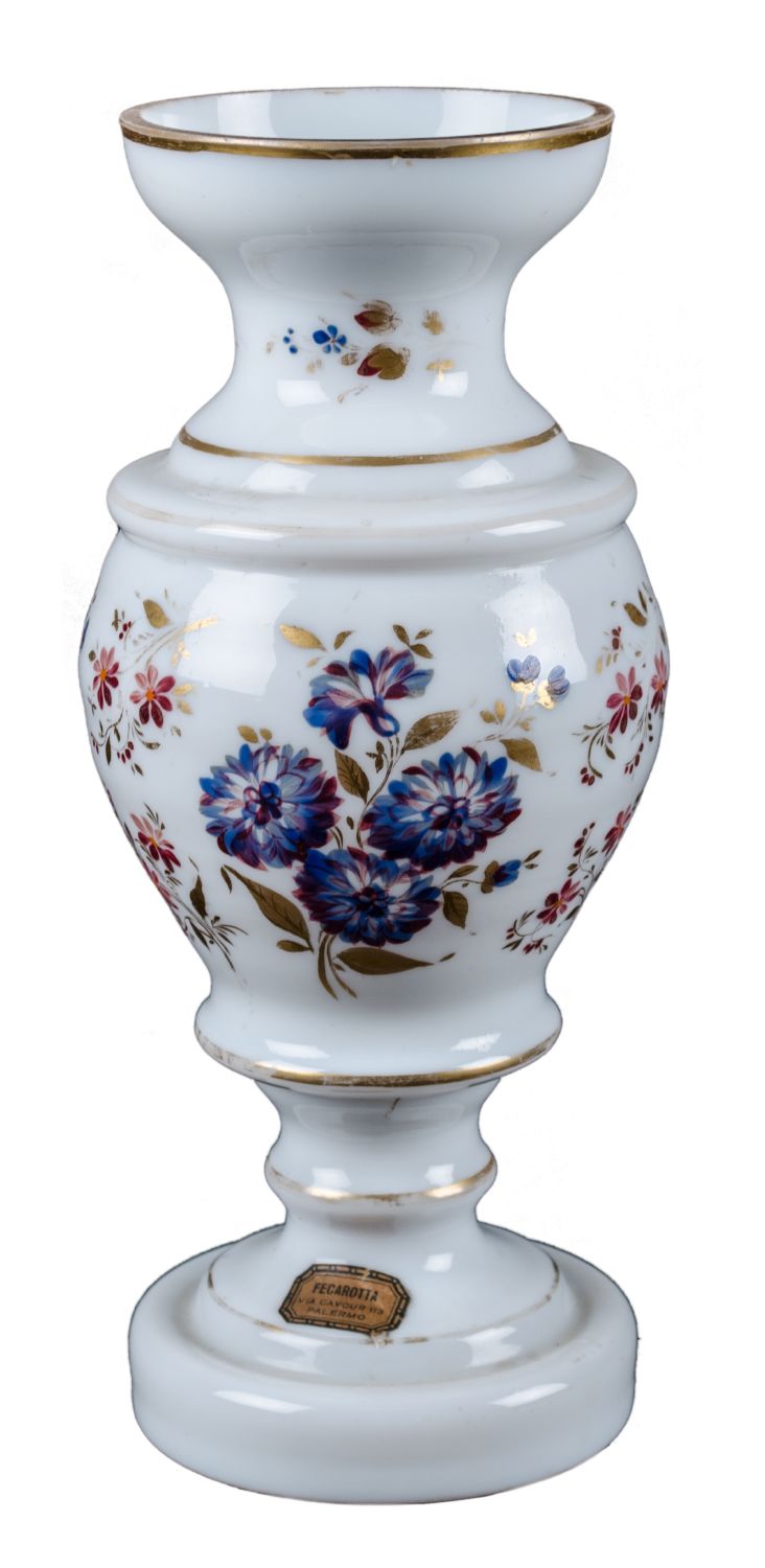 VASETTO in opaline con decori a motivo floreale. XIX secolo Misure: h cm 24