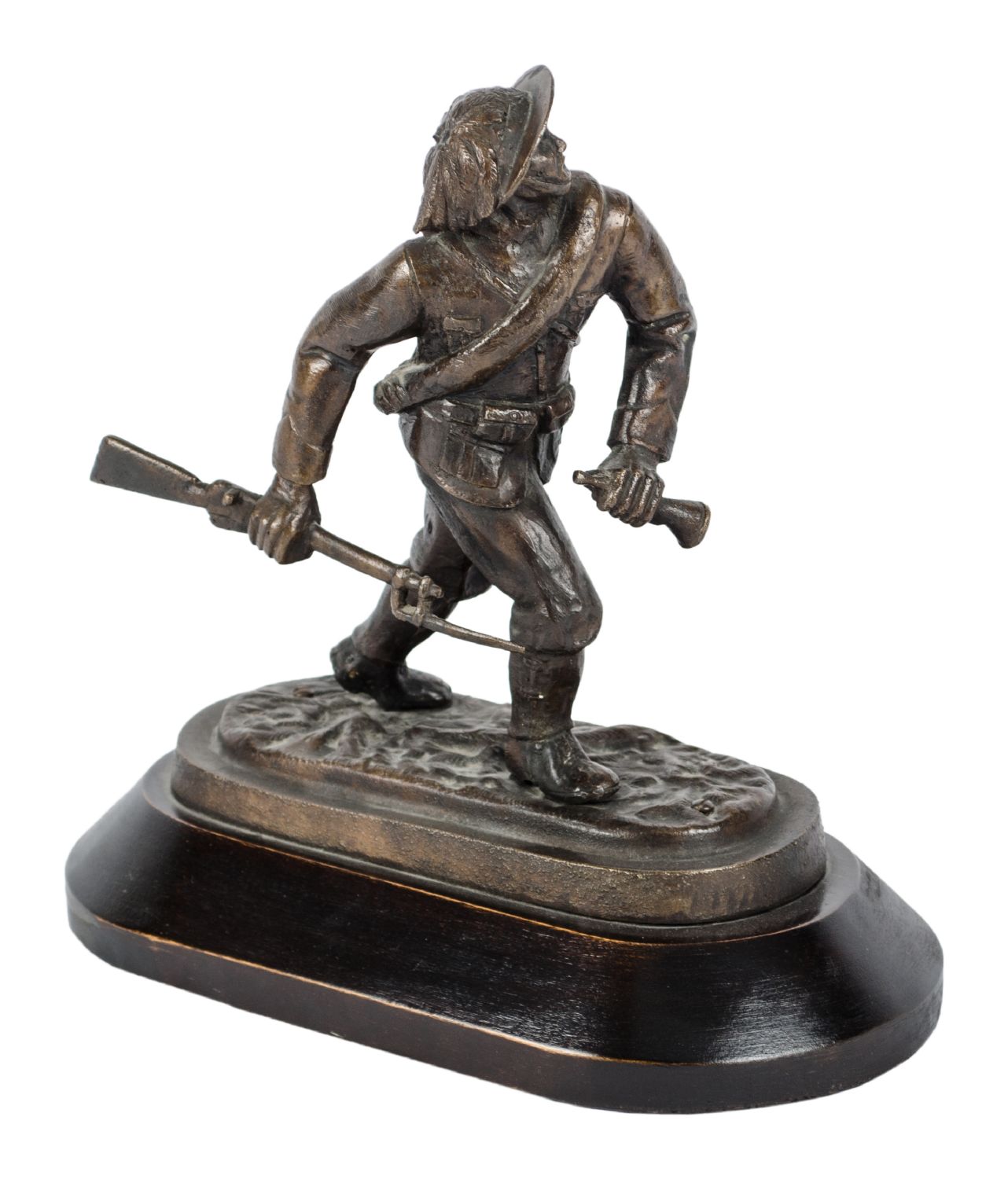 SCULTURA in bronzo "il bersagliere", con base in legno. XX secolo Misure: h...