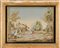 ARAZZO "paesaggio con caseggiato e personaggi" entro cornice in legno dorato...