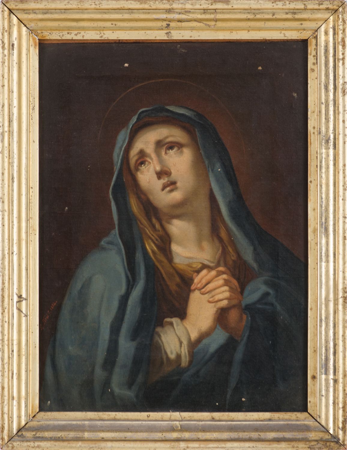 L. NEU' F. OLIO su tela "Vergine Adolorata" firmato a sinistra. Datato 1854 Misure: cm 32 x 24