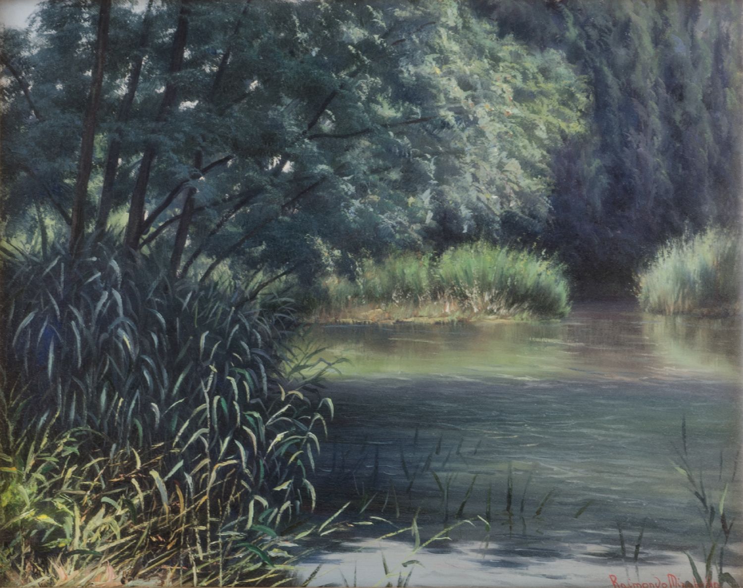 RAIMONDO MIRABELLA (Palermo 1914 - 1979) OLIO su cartone telato "fiume", firmato in basso a destra. Misure: cm 40 x 50