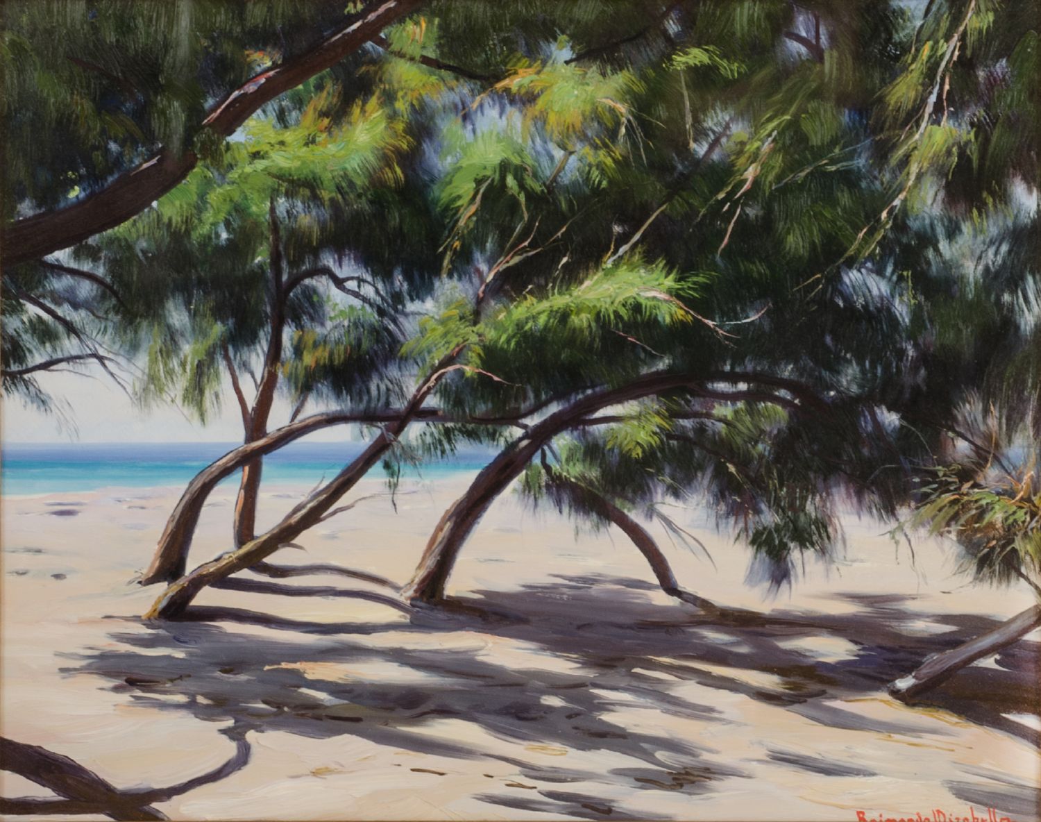 RAIMONDO MIRABELLA (Palermo 1914 - 1979) OLIO su masonite telata "spiaggia con alberi", firmato in basso a destra. Misure: cm 40 x 50