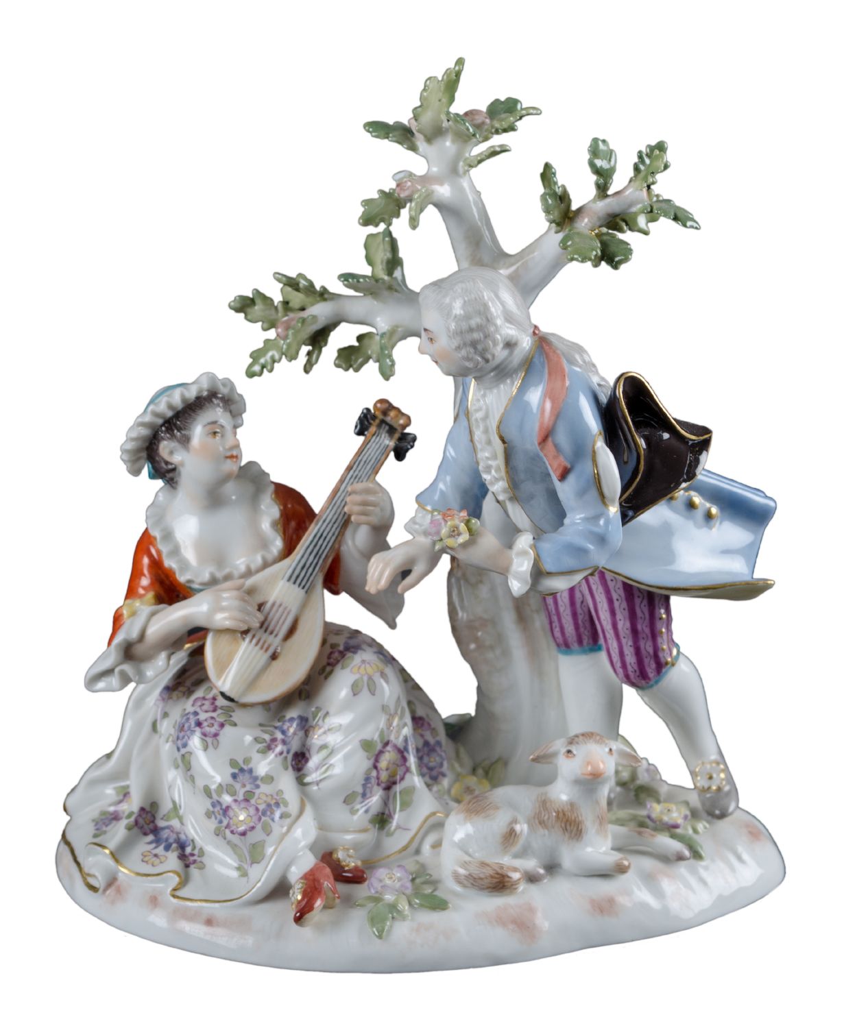 GRUPPO in porcellana Meissen raffigurante "scena galante". Primi '900 Misure:...