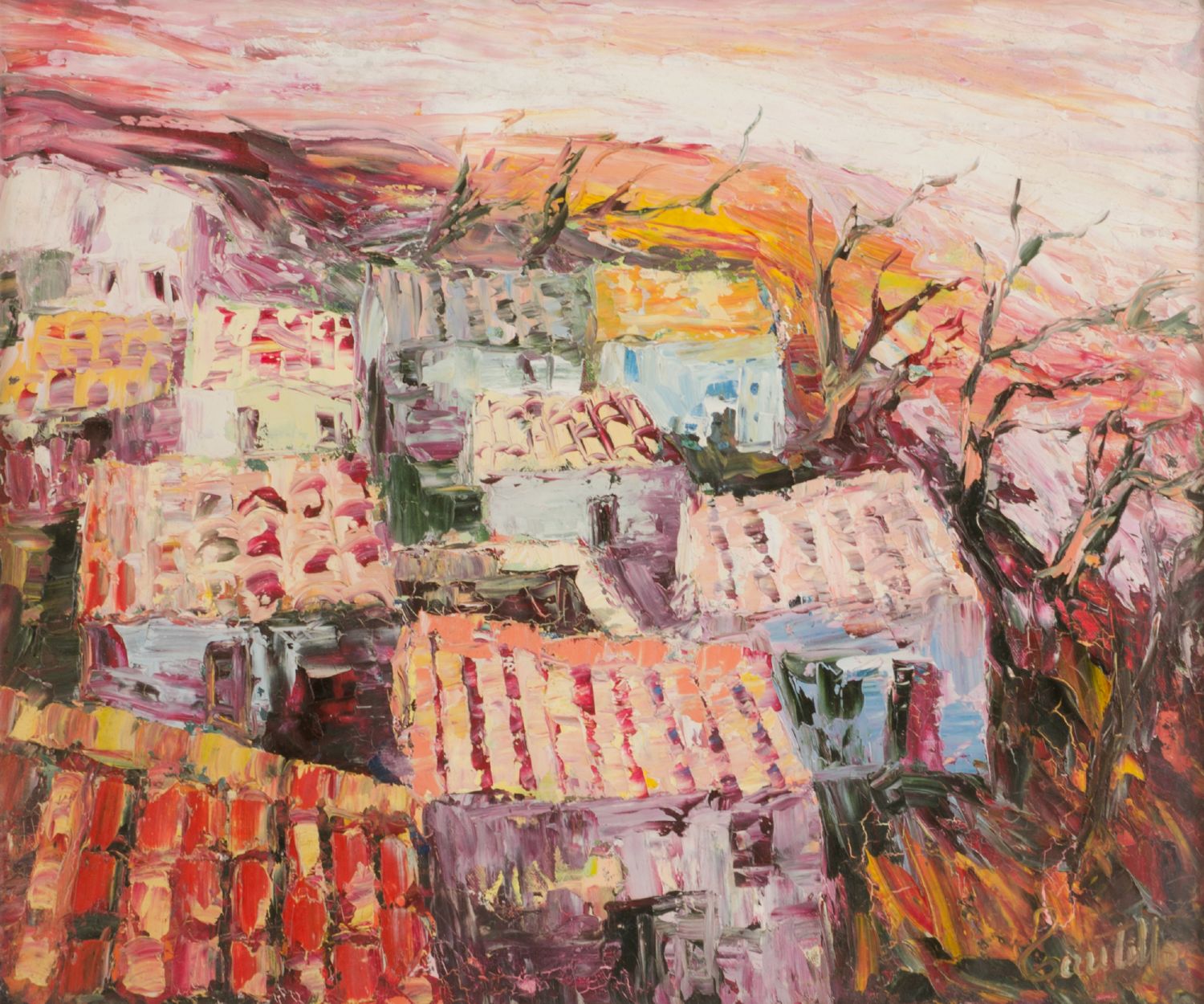 VINCENZO TANTILLO OLIO su tela "tetti d'inverno", firmato in basso a destra....