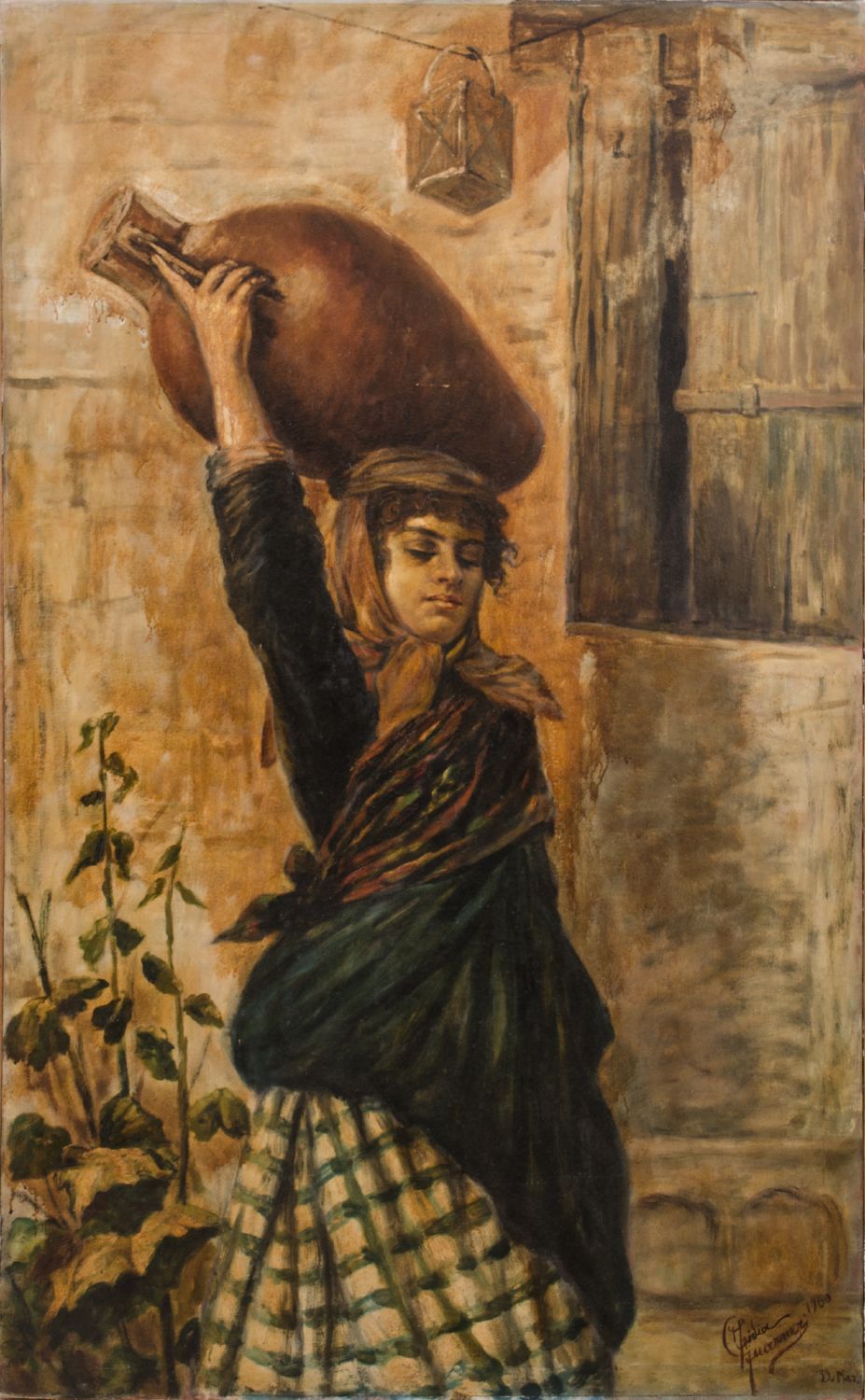 FIDIA GUARNERI OLIO su tela "ragazza con brocca". Datato 1960 Misure: cm 161,5 x 98