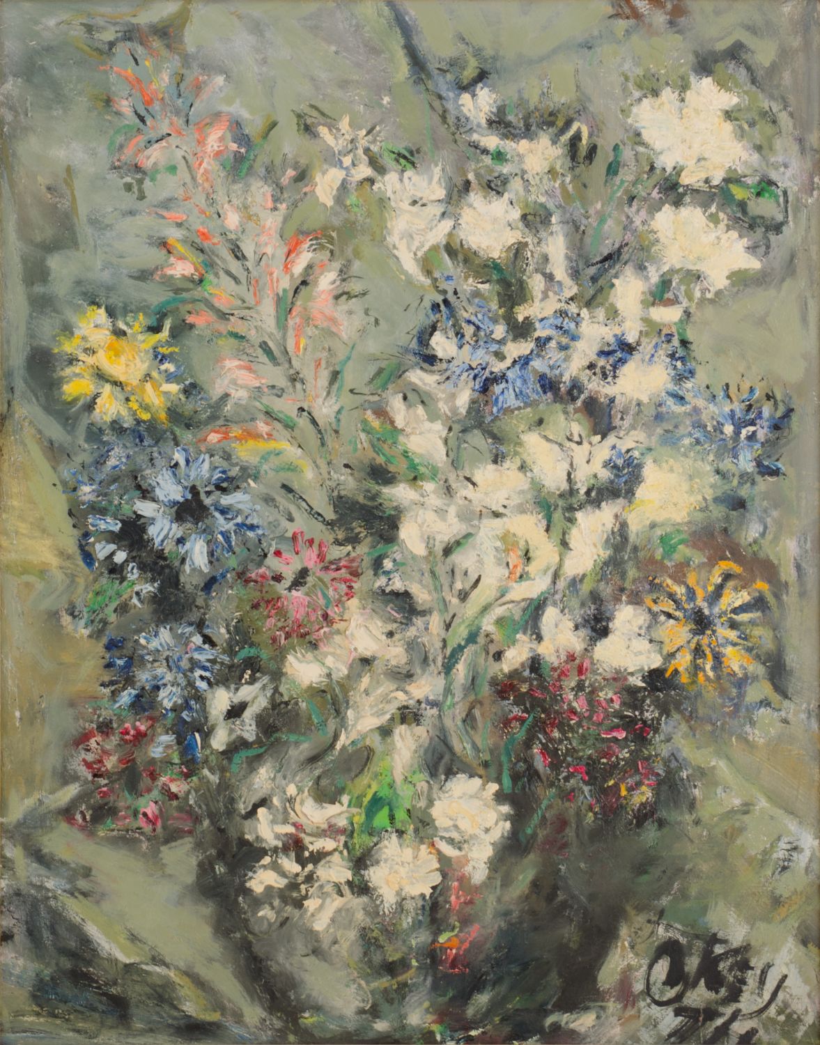 OLIO su tela "fiori" firmato in basso a destra e sul retro. Datato 1974...