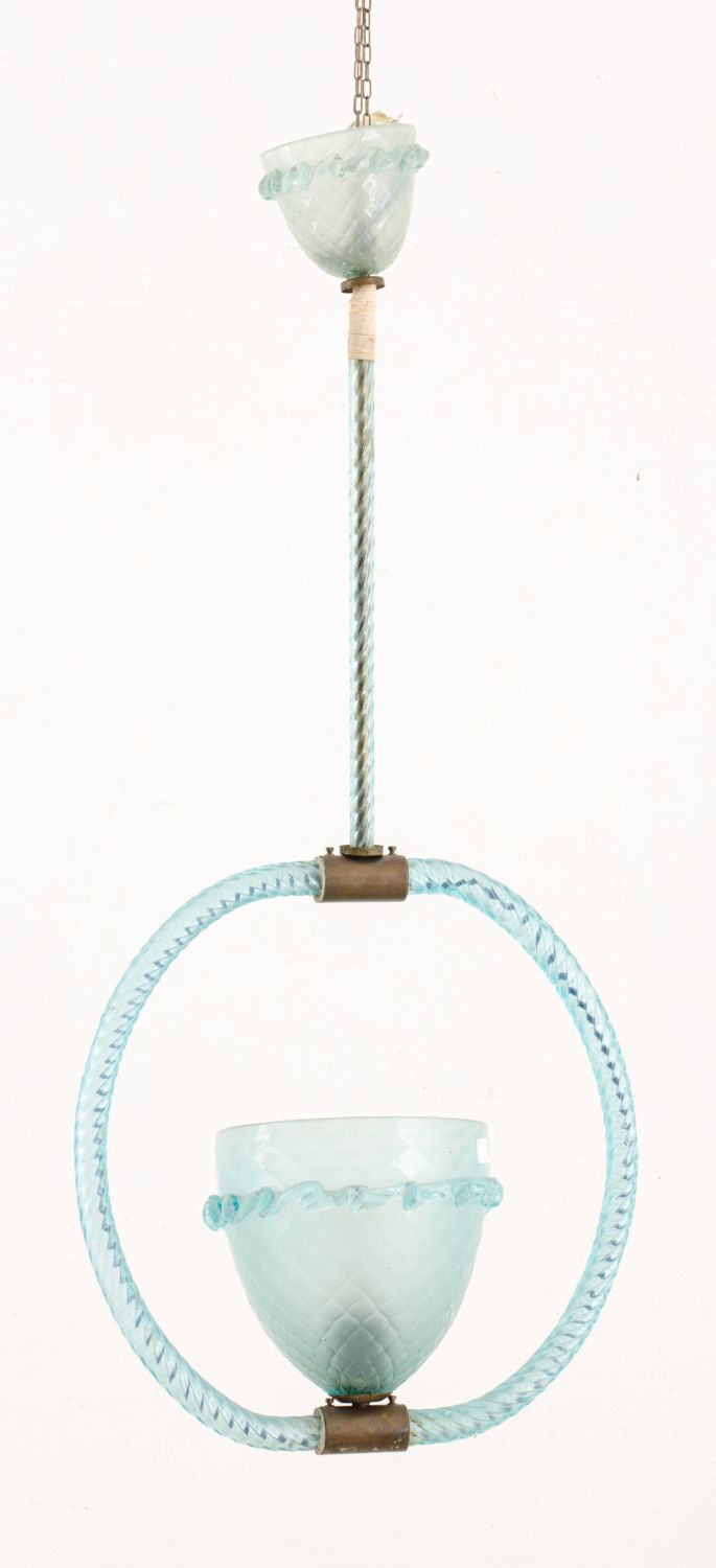 LAMPADARIO ad una luce in vetro nei toni del celeste. Primi '900 Misure: h cm 93