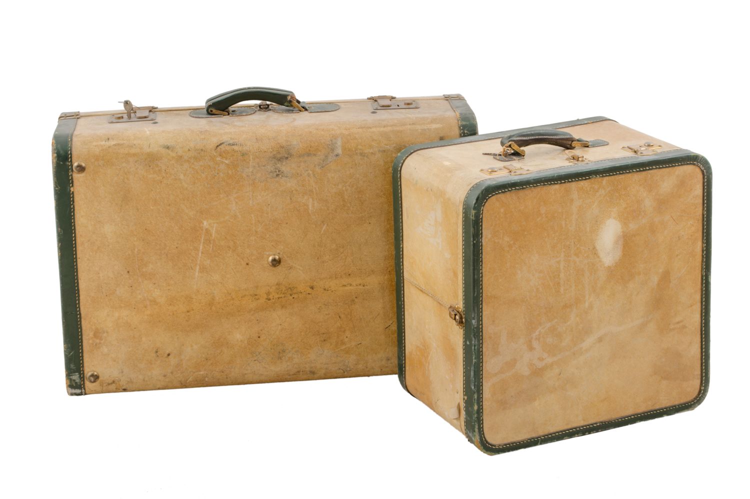 DUE VALIGIE nei toni del giallo e del verde. Meta' '900 Misure: cm 40 x 25 x h 40