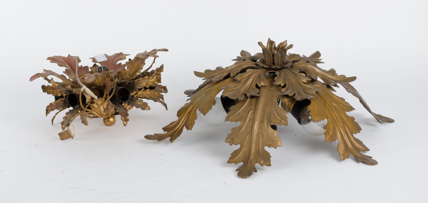 DUE PICCOLE PLAFONIERE in ferro. XX secolo Misure: diametri cm 22 - 39