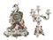 LOTTO composto da OROLOGIO e da CANDELABRO a tre fiamme in porcellana Capodimonte decorato con putti e fiori a rilievo. XX secolo Misure: varie