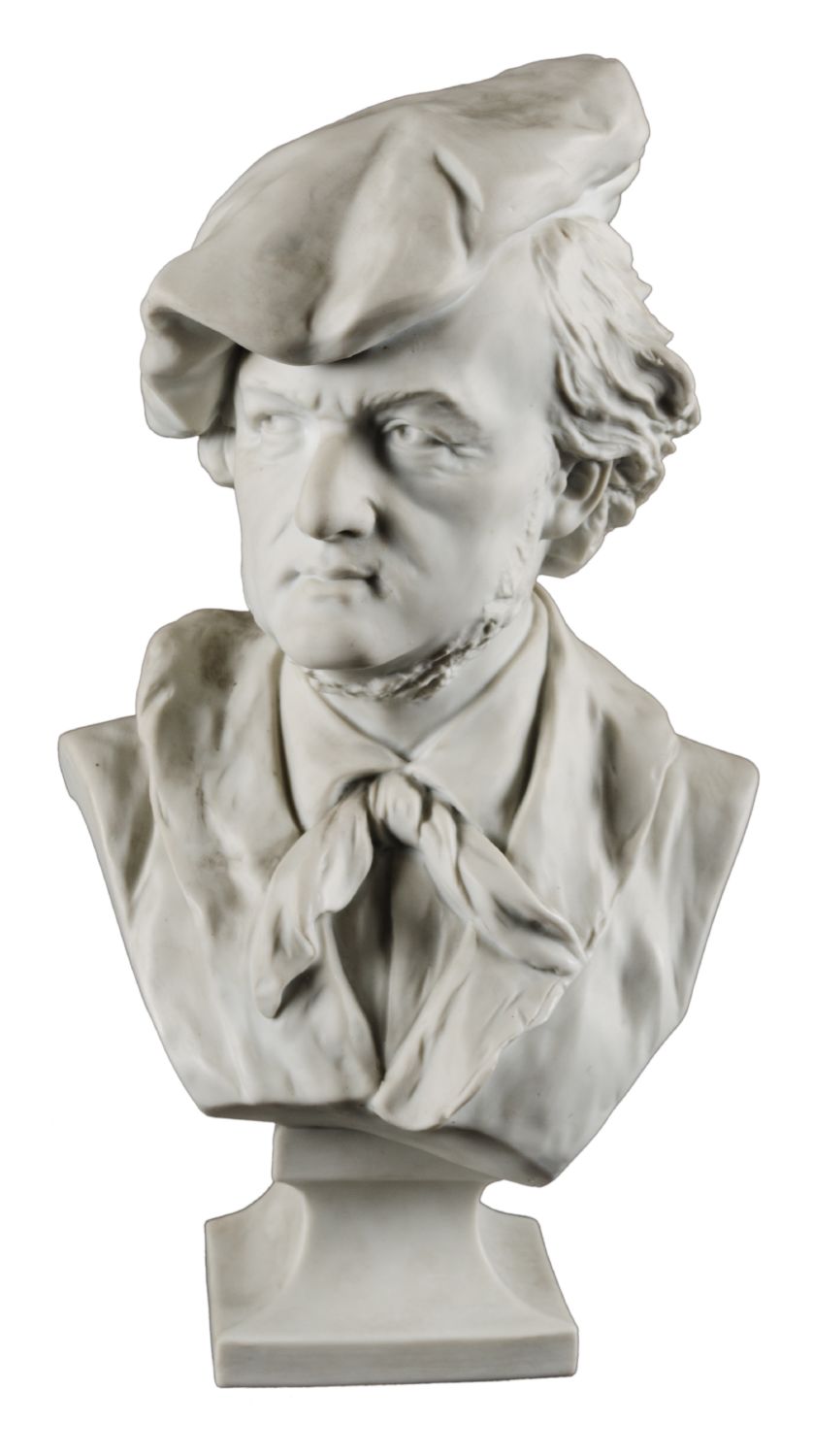 MEZZOBUSTO in biscuit raffigurante "Richard Wagner". Primi '900 Misure: h cm 27