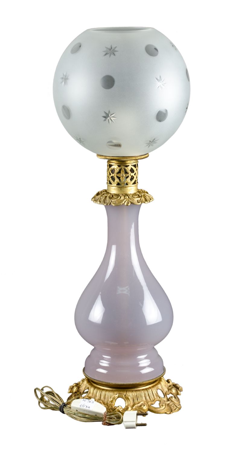 Lot 274 | LUME in opaline con base e collo in bronzo dorato, boccia in vetro. Primi...