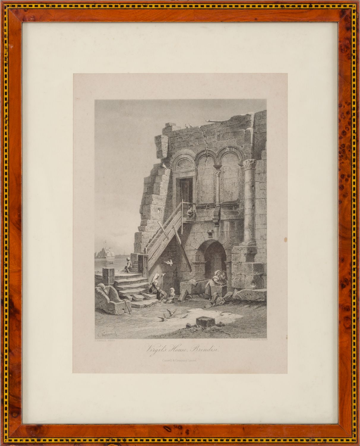TRE STAMPE raffiguranti "Sund", "scene d'interno con personaggi" e "Virgilis House a Brindisi". XX secolo Misure: varie