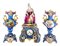 IMPORTANTE TRITTICO composto da OROLOGIO in porcellana dipinta nei toni del blu lumeggiato in oro zecchino lavorato a rilievo a motivo floreale con gentildonna superiore e da coppia di VASI in porcellana dipinta con "scena galante" e "fiori" (restauri). Francia primi '800 Misure: h cm 56 - h cm 45