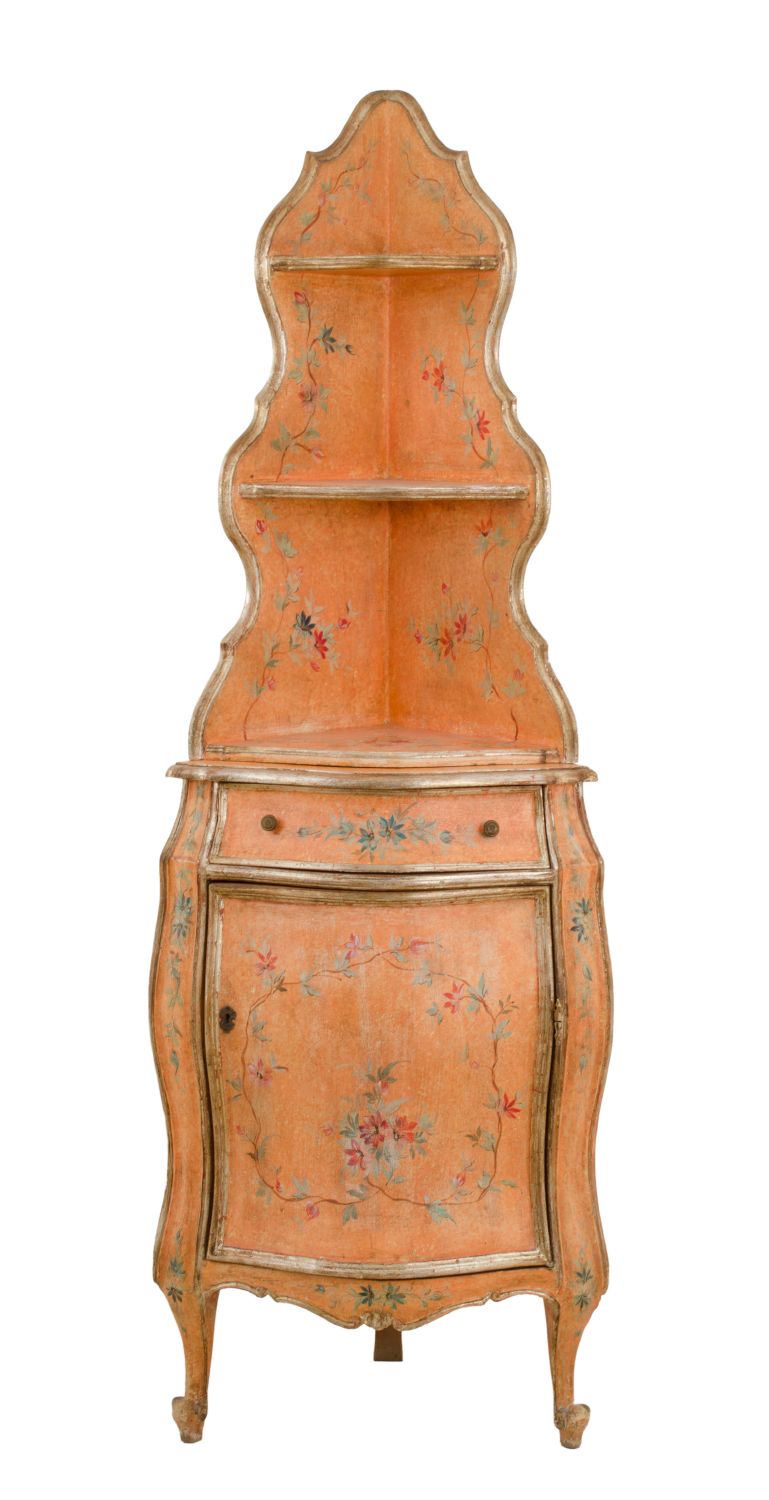 ANGOLIERA con cassetto e sportello in legno laccato, dorato e dipinto a...