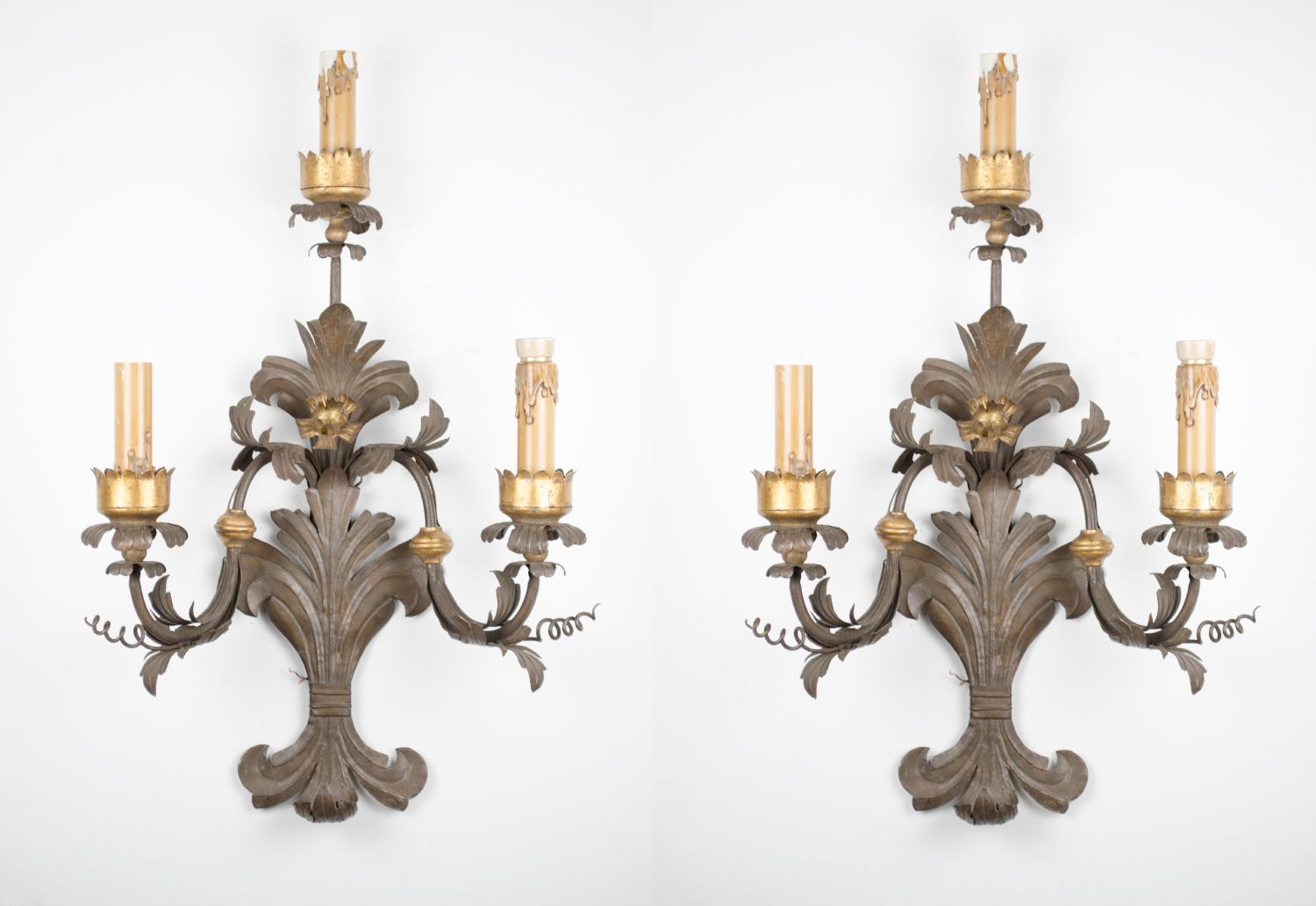 COPPIA APPLIQUES in ferro. Toscana XIX secolo Misure: h cm 85