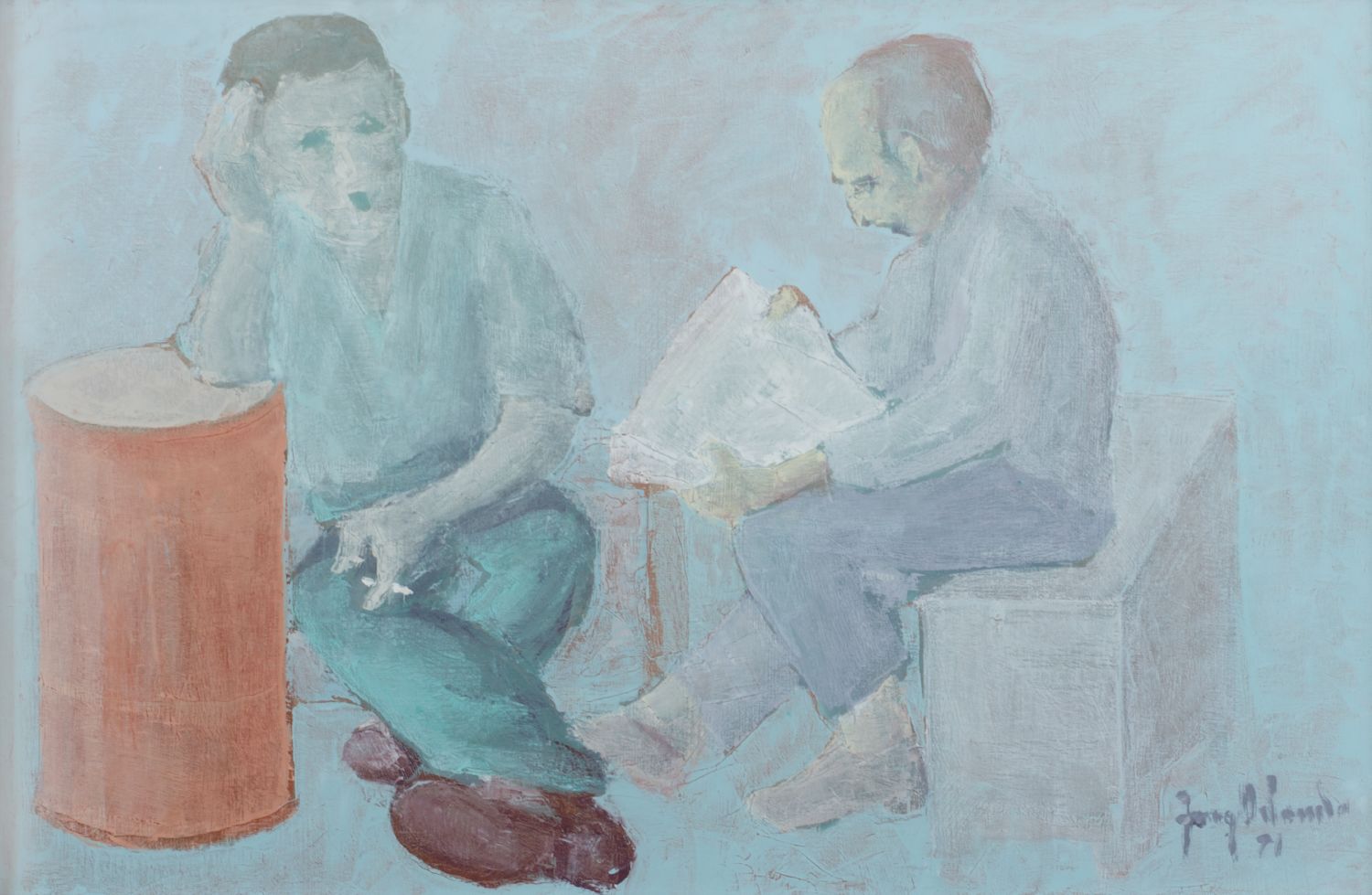 FRANZ ORLANDO OLIO su tela "personaggi", firmato in basso a destra. Datato 1971 Misure: cm 58 x 89