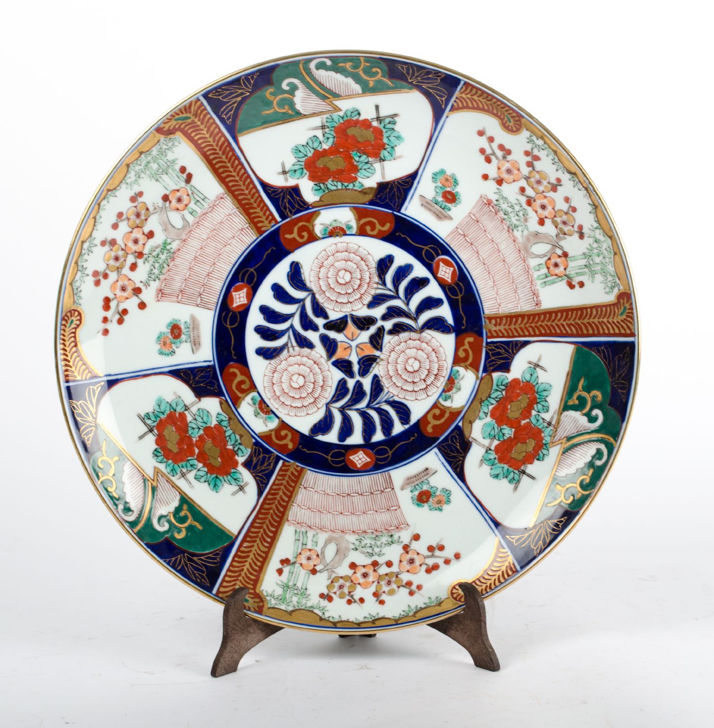 PIATTO in ceramica policroma decorata a motivo floreale e fogliaceo. Cina XX secolo Misure: diametro cm 46