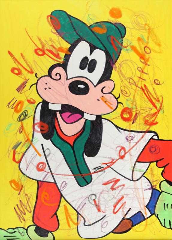 ENRICO MANERA (Asmara (Etiopia) 1947) Pippo tecnica mista su carta cm 100x70 firmato sul retro autentica su foto a cura di Carol Marì Manera