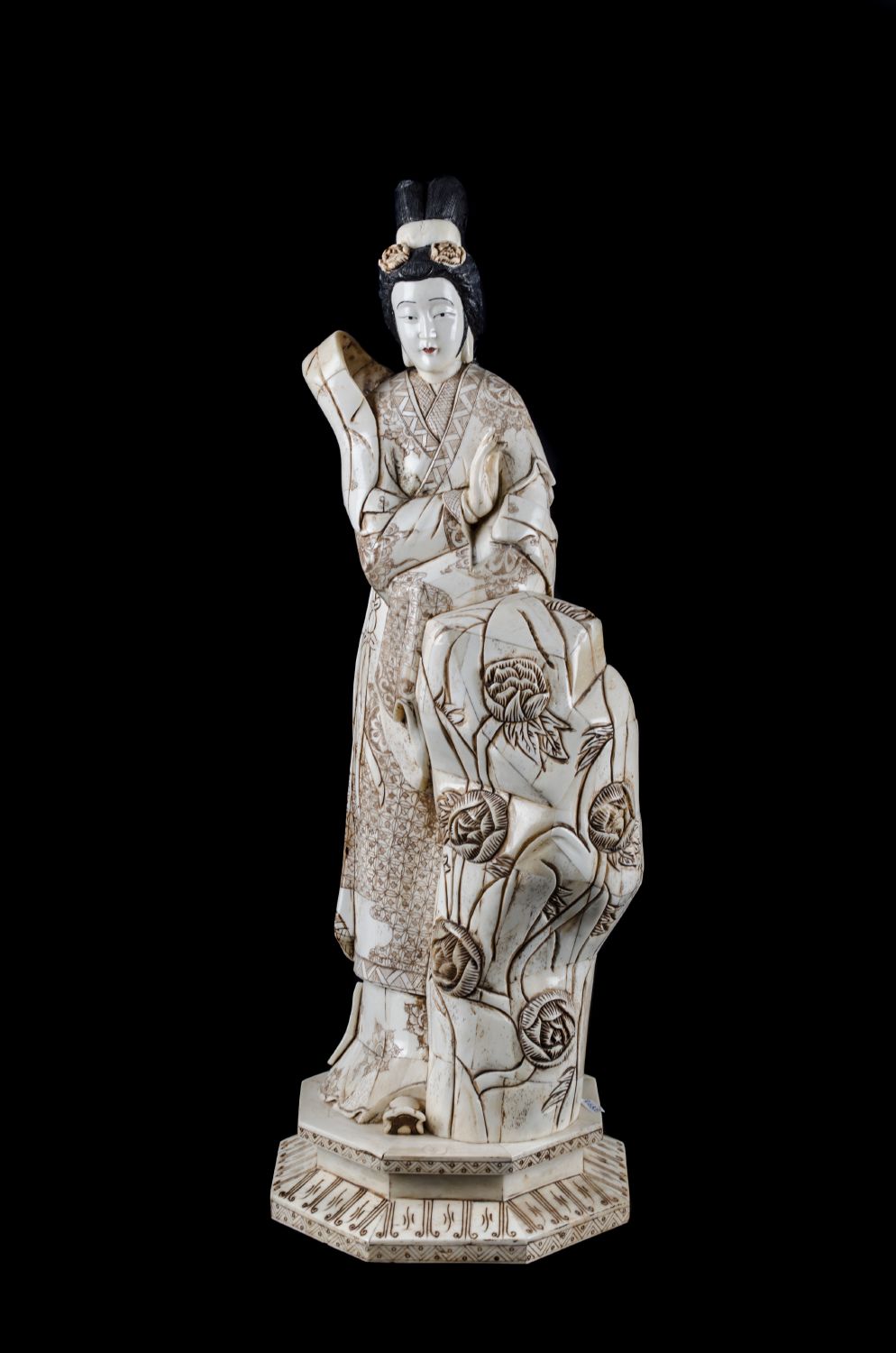 SCULTURA rivestita in osso decorata raffigurante "figura femminile". Cina XX secolo Misure: h cm 56