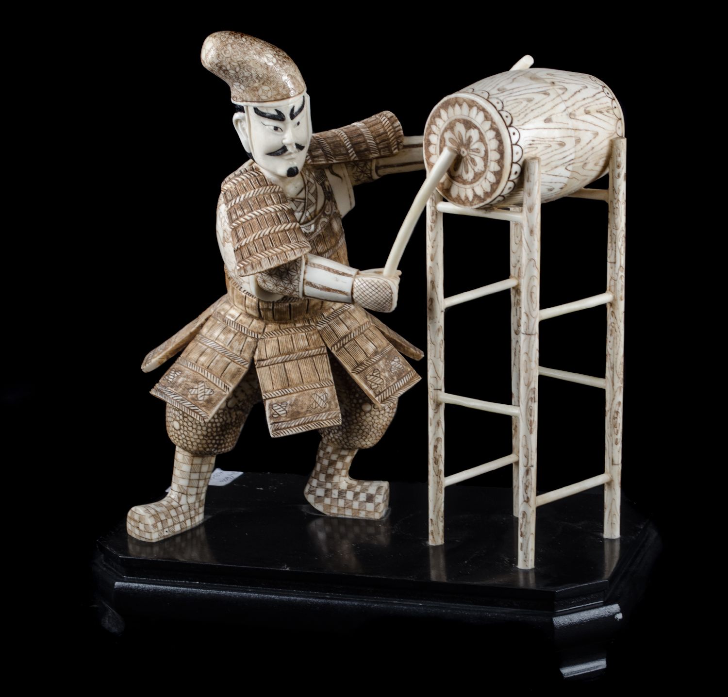 GRUPPO rivestito in osso raffigurante "suonatore di tamburo" con base in...