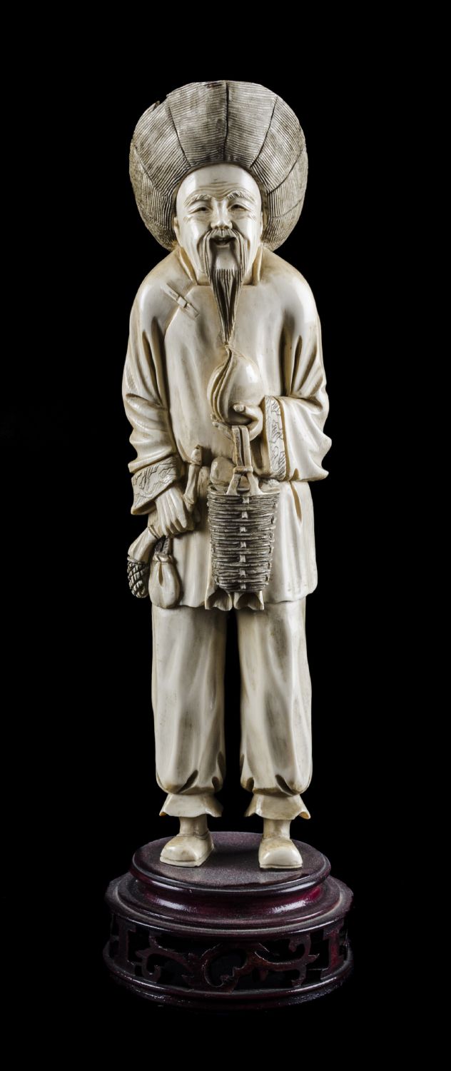 Lot 438 | SCULTURA in avorio raffigurante "figura maschile", con base in legno. Cina...