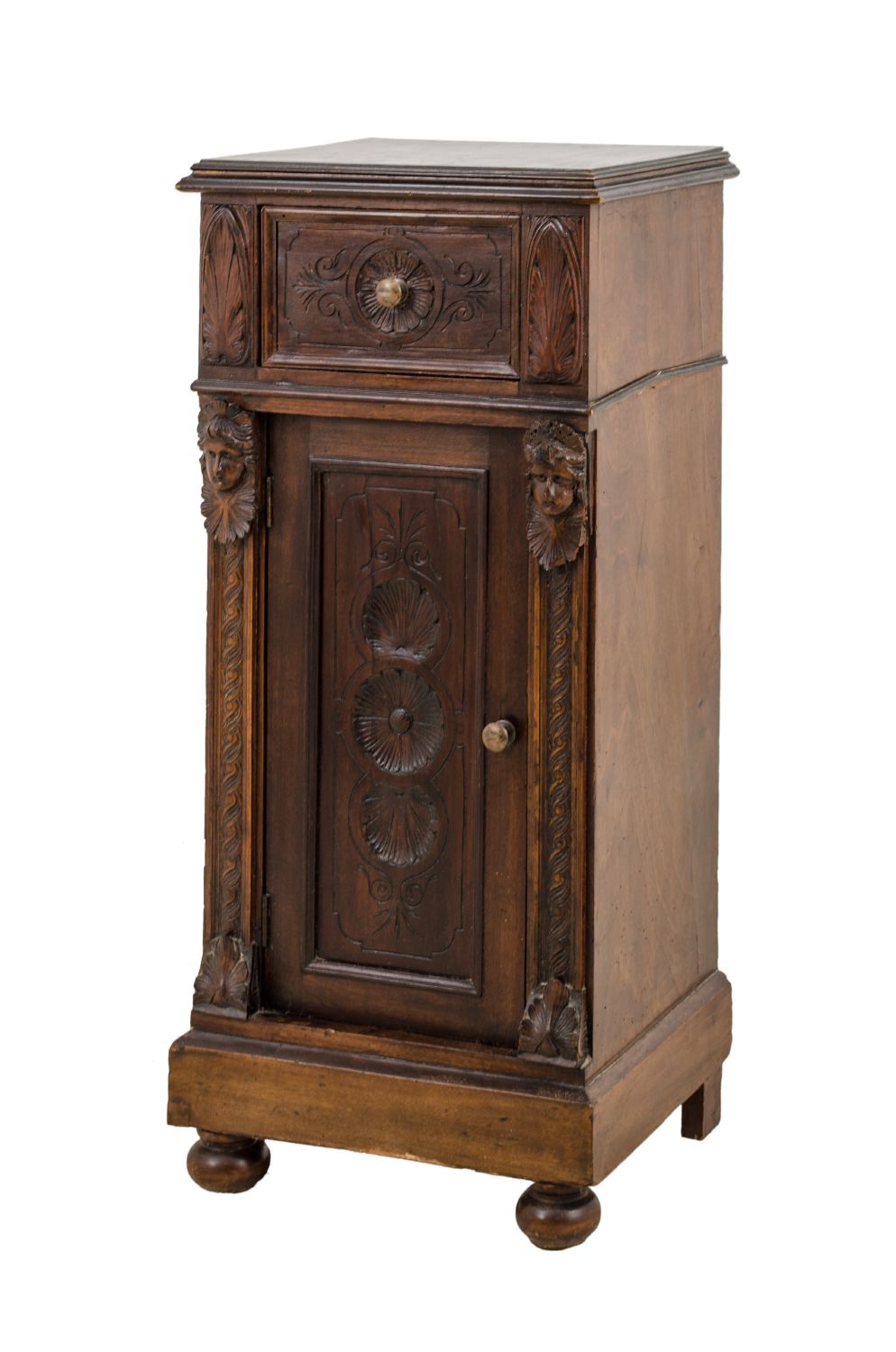 Lot 481 | COMODINO stile Umbertino in noce. Sicilia fine '800 Misure: cm 41 x 34 x h 92