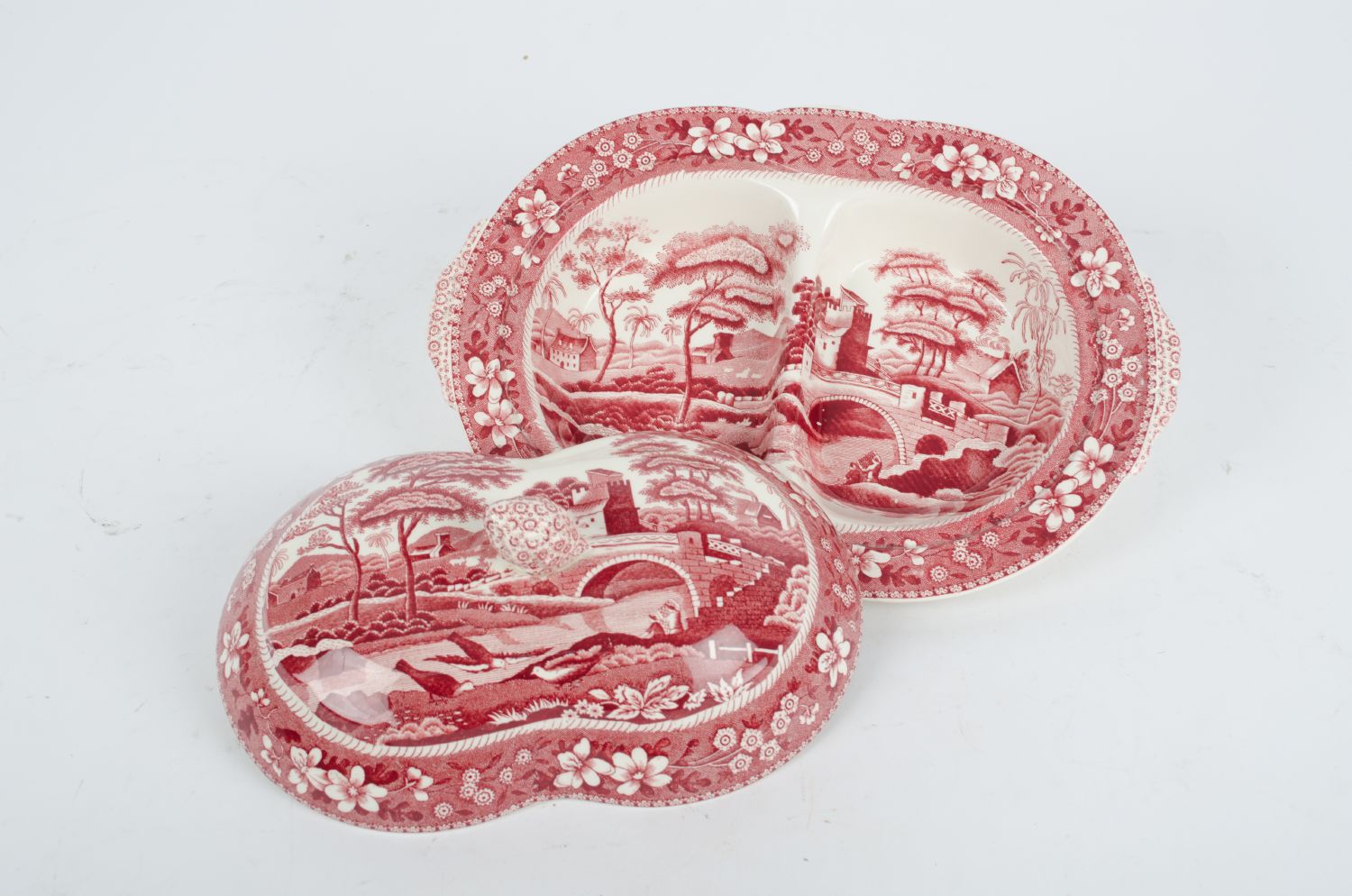 ANTIPASTIERA in ceramica bianca Copeland dipinta a motivo paesaggistico....