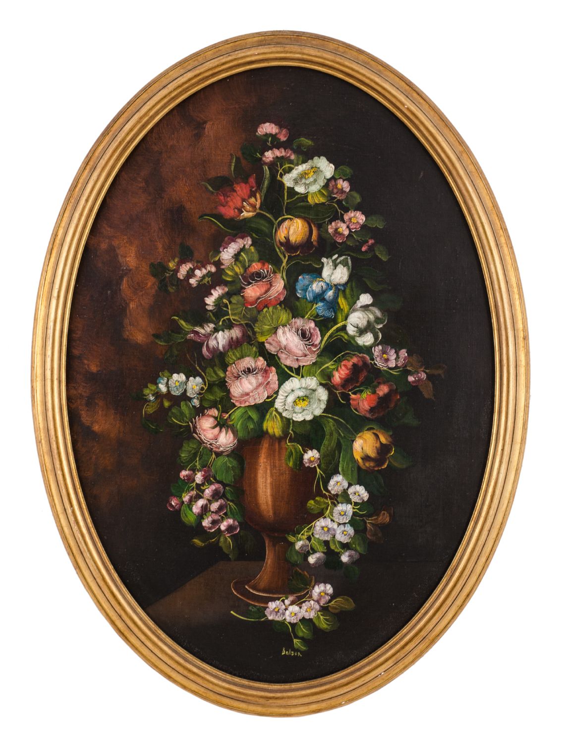 OLIO su masonite "vaso con fiori". XX secolo Misure: cm 83 x 58