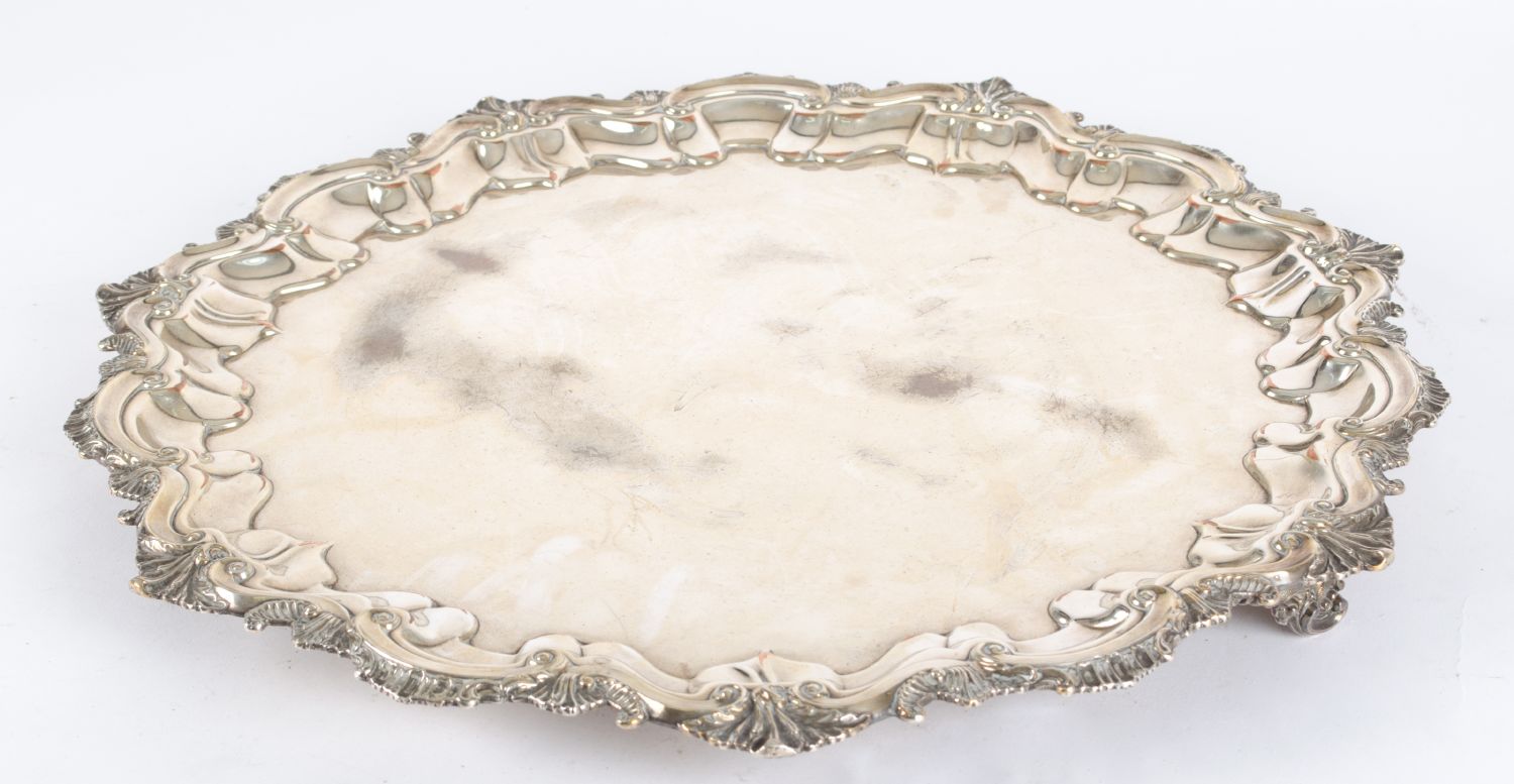VASSOIO tondo in Sheffield. Inghilterra fine '800 Misure: diametro cm 48,5