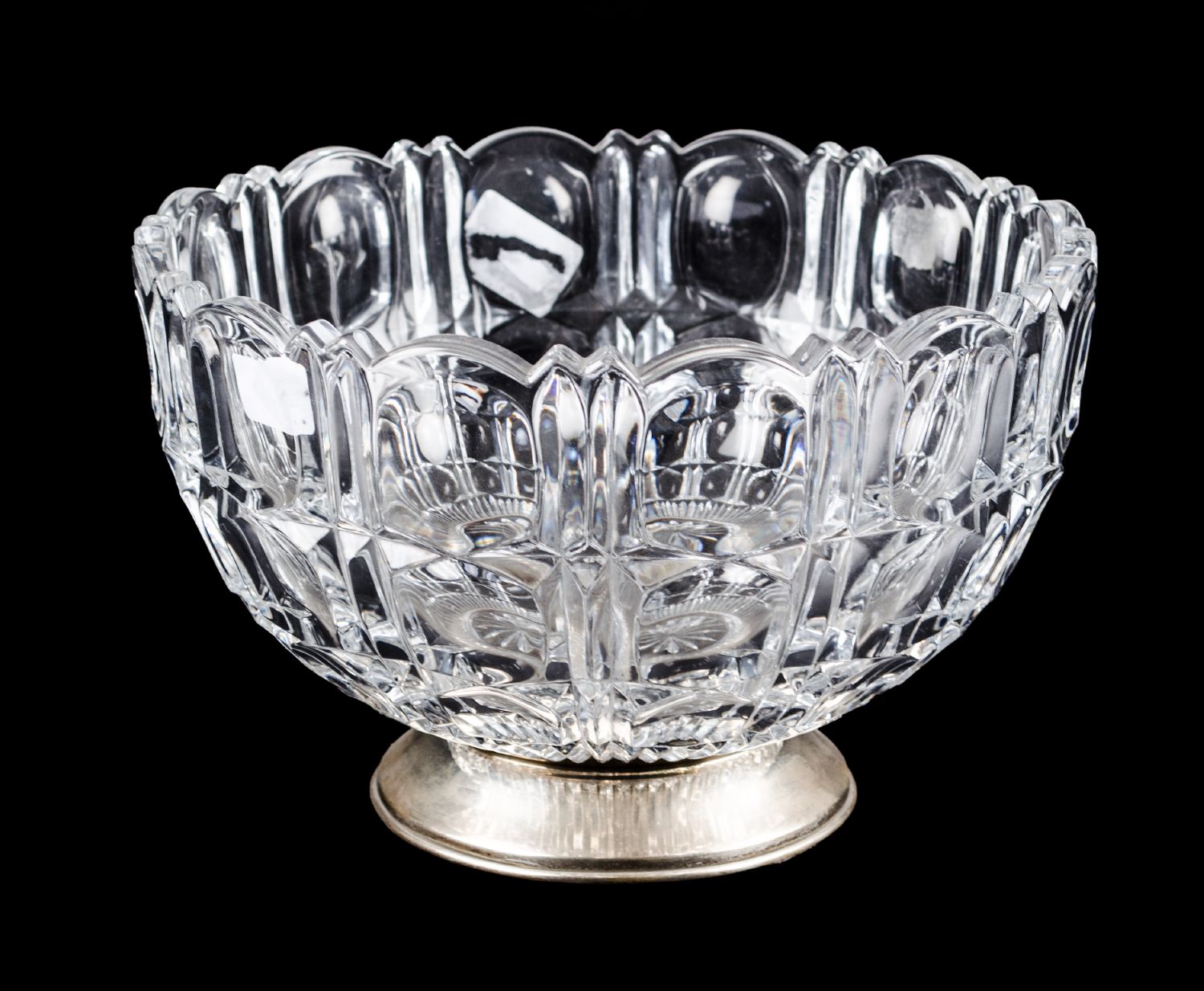 CENTROTAVOLA in cristallo con base in argento. Spagna primi '900 Misure: diametro cm 23 x h 14
