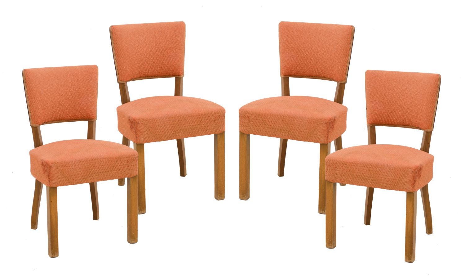 QUATTRO SEDIE deco' in noce (seduta h cm 46). Italia I meta' '900 Misure: cm 48 x 44 x h 81