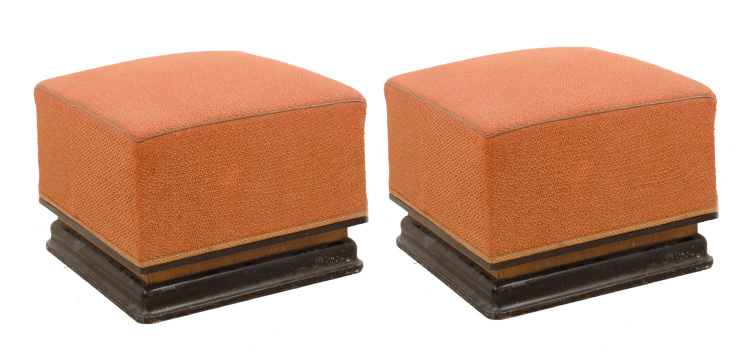 DUE POUF deco' in noce con base in legno ebanizzato. Sicilia meta' '900 Misure: cm 49 x 47 x h 33