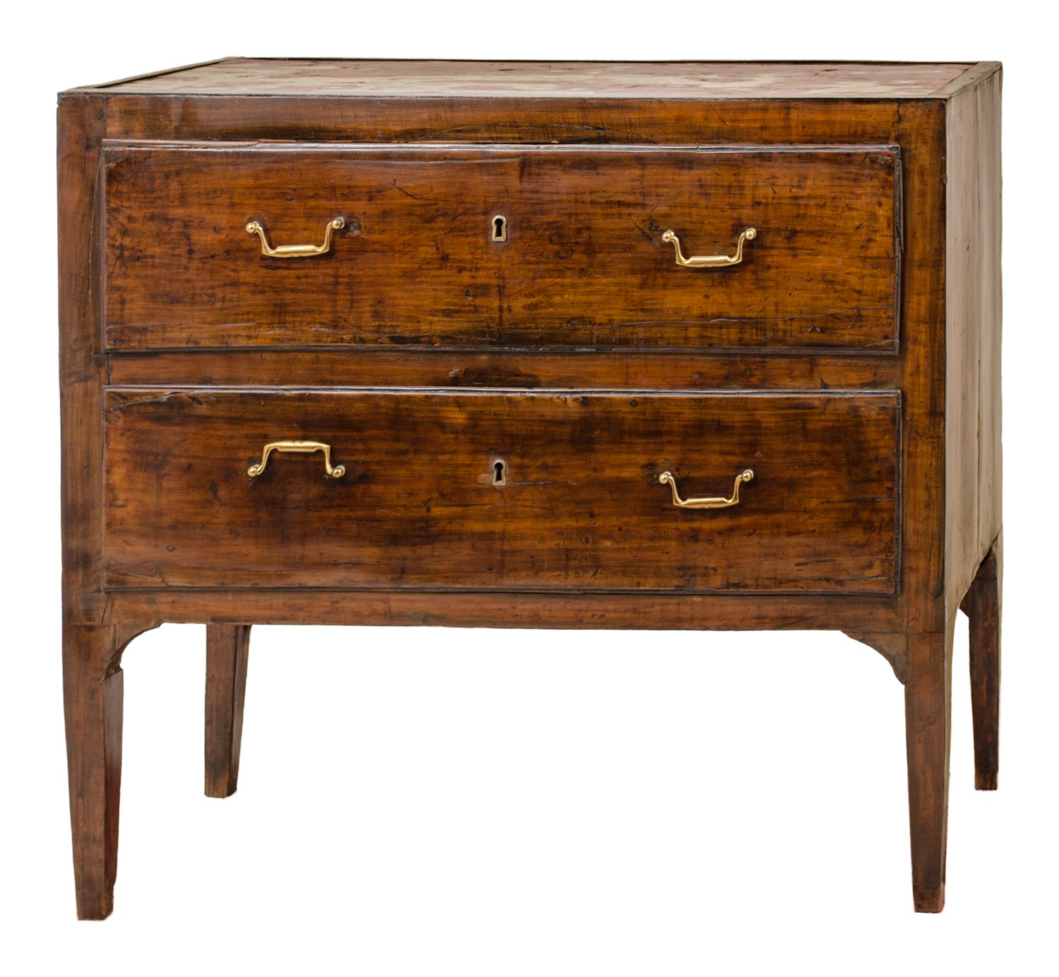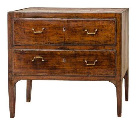 CASSETTONCINO a due cassetti in noce con piano in marmo rosso venato incassato. Sicilia XIX secolo Misure: cm 95 x 44 x h 87