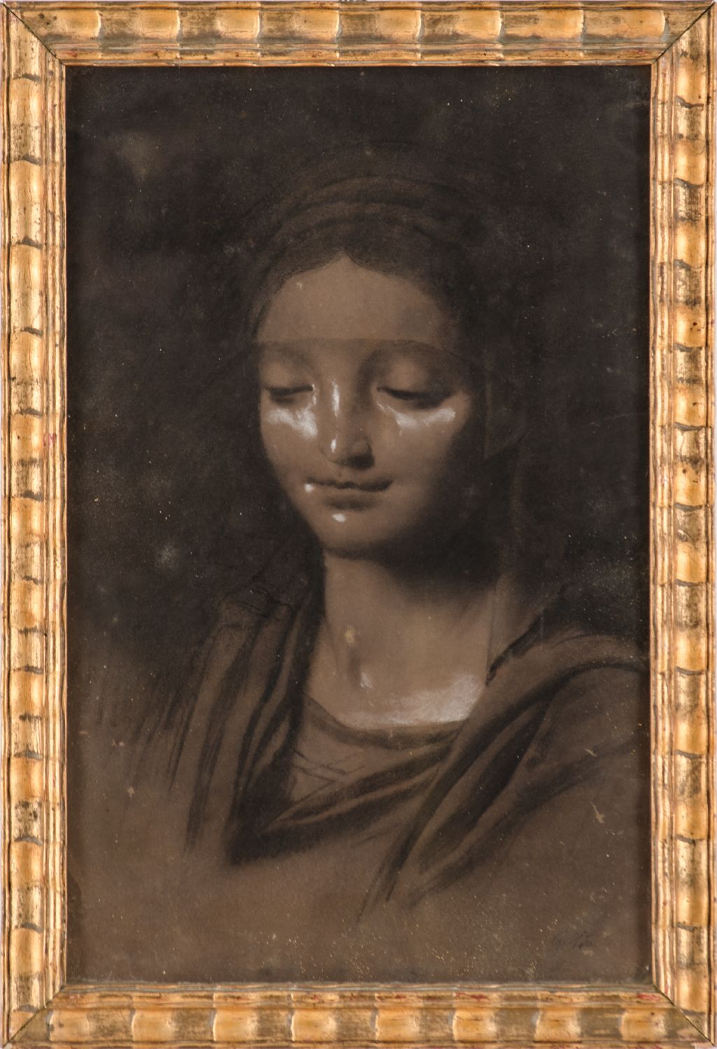 PAOLO VETRI (Castrogiovanni (EN) 1855 - Napoli 1937) CARBONCINO raffigurante "mezzobusto femminile". Misure: cm 48 x 30